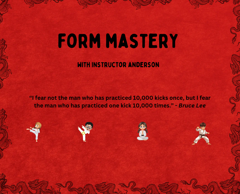 Created by Instructor Shaun Anderson, a martial artist with 30+ years of experience across Taekwondo, Karate, Jiu-Jitsu, Kickboxing, Hapkido, and Self-Defense, the Form Tracker is designed to help young students stay consistent, focused, and proud of their progress.